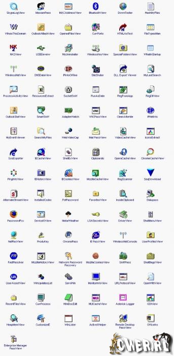 Полезные небольшие утилиты для отображения скрытых паролей, перехвата передающейся информации, отображения не слишком доступной программной информации и многое другое, большинство из них русифицированные.