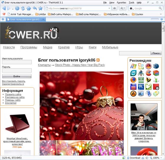 Скачать программу TheWorld Browser 3.3.0.8 Final (1,61 МБ):