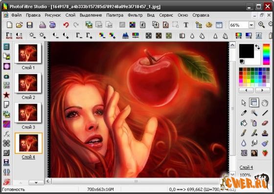 В состав программы входят инструменты, позволяющие как создавать новые работы, так и редактировать уже готовые рисунки. Кроме этого, в распоряжении пользователя есть более сотни фильтров для обработки изображений, например, акварель, пастель, эффект разбивания на паззлы и т.д. Т.е. фильтры, которые используются чаще всего, вынесены на панель инструментов для более удобного доступа.