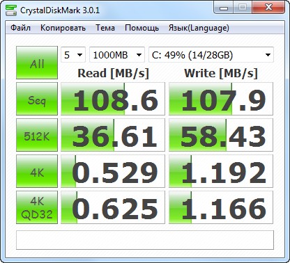 CrystalDiskMark - небольшая бесплатная программа, предназначенная для сравнительного анализа (тестирования) быстродействия жестких дисков компьютера. Позволяет измерить скорость чтения и записи данных.